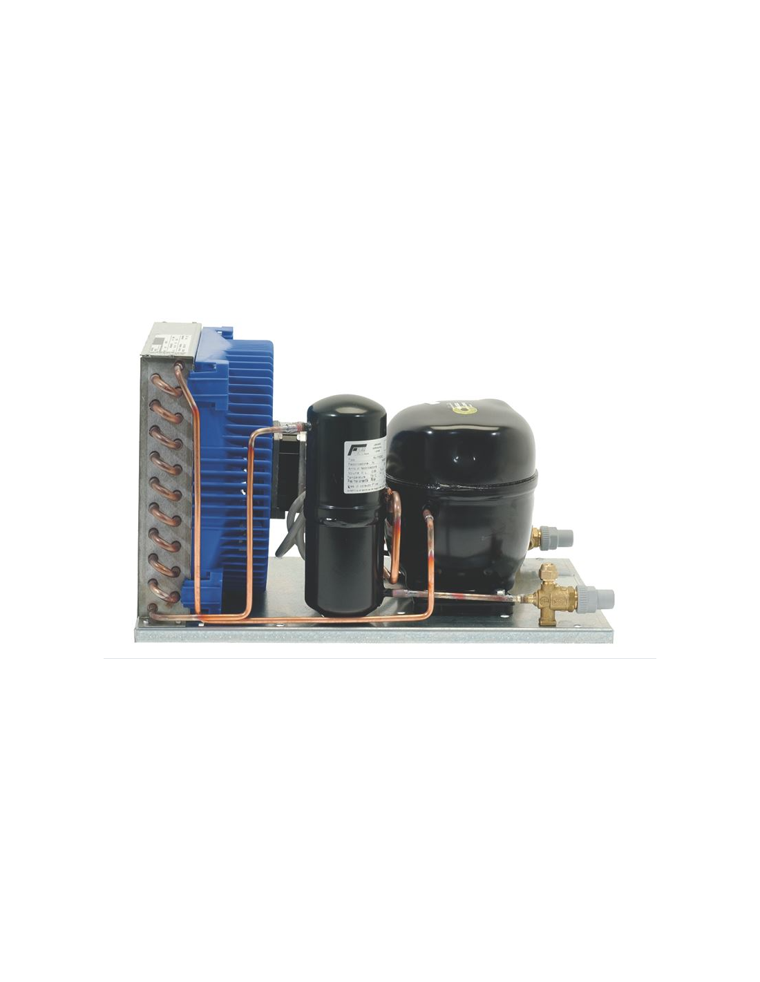 Kälteanlage EMBRACO-ASPERA EMT6152GK, 1/5 PS, hermetisch geschlossen, mit Kältemittel R452/R404, Expansionsventil und 10/6-mm-Anschlüssen. Ideal für HMBP-Überdruckkälteanlagen.