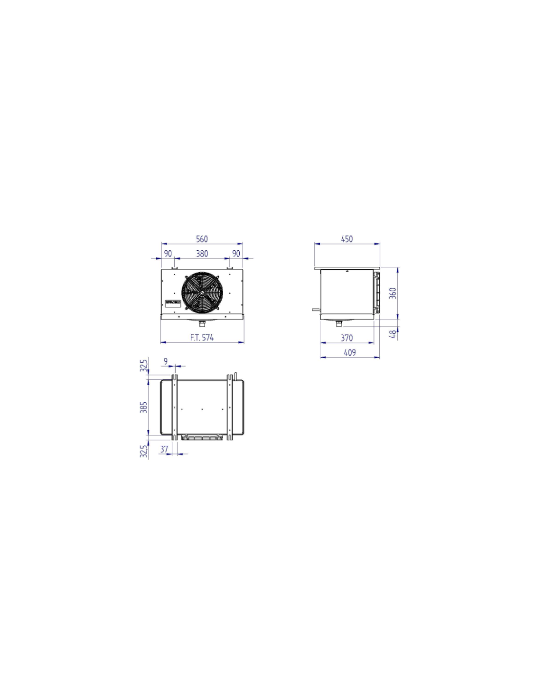 Die aus Kupferrohren und Aluminiumlamellen mit 8 mm Lamellenabstand und 4 Reihen bestehende Spule gewährleistet einen optimalen Wärmeaustausch und reduziert die Eisbildung, wodurch die Gesamteffizienz des Systems verbessert wird. Dank ihrer kompakten Bauweise ist die Installation auch in kleinen Kühlräumen möglich.
