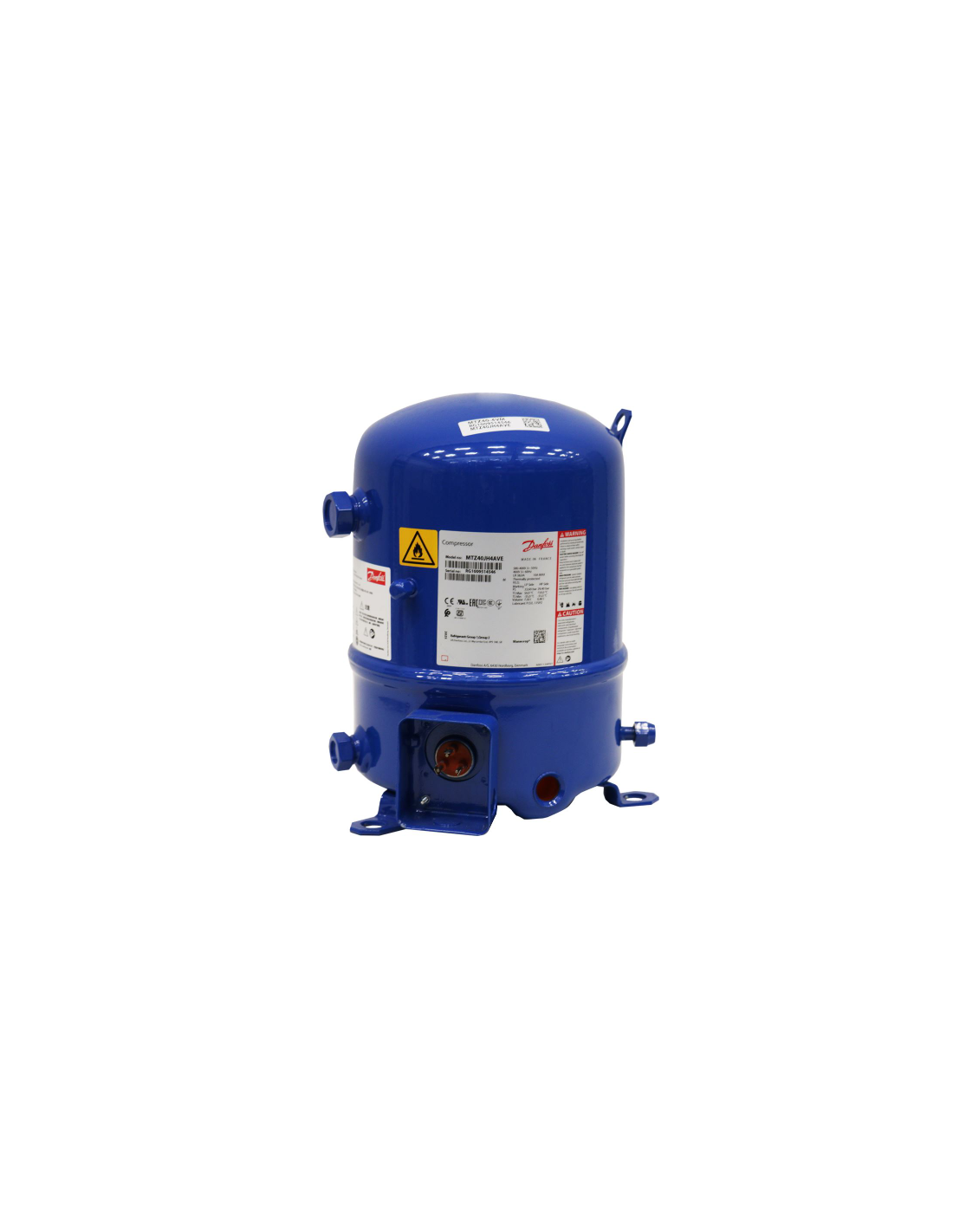 MANEUROP MTZ40-4VM compressor, reliable and compact, ideal for M/HBP applications. Compatible with R404A, R507A, R448A, R449A and R452A refrigerants. Three-phase power supply 380-420V, frequency 50Hz.