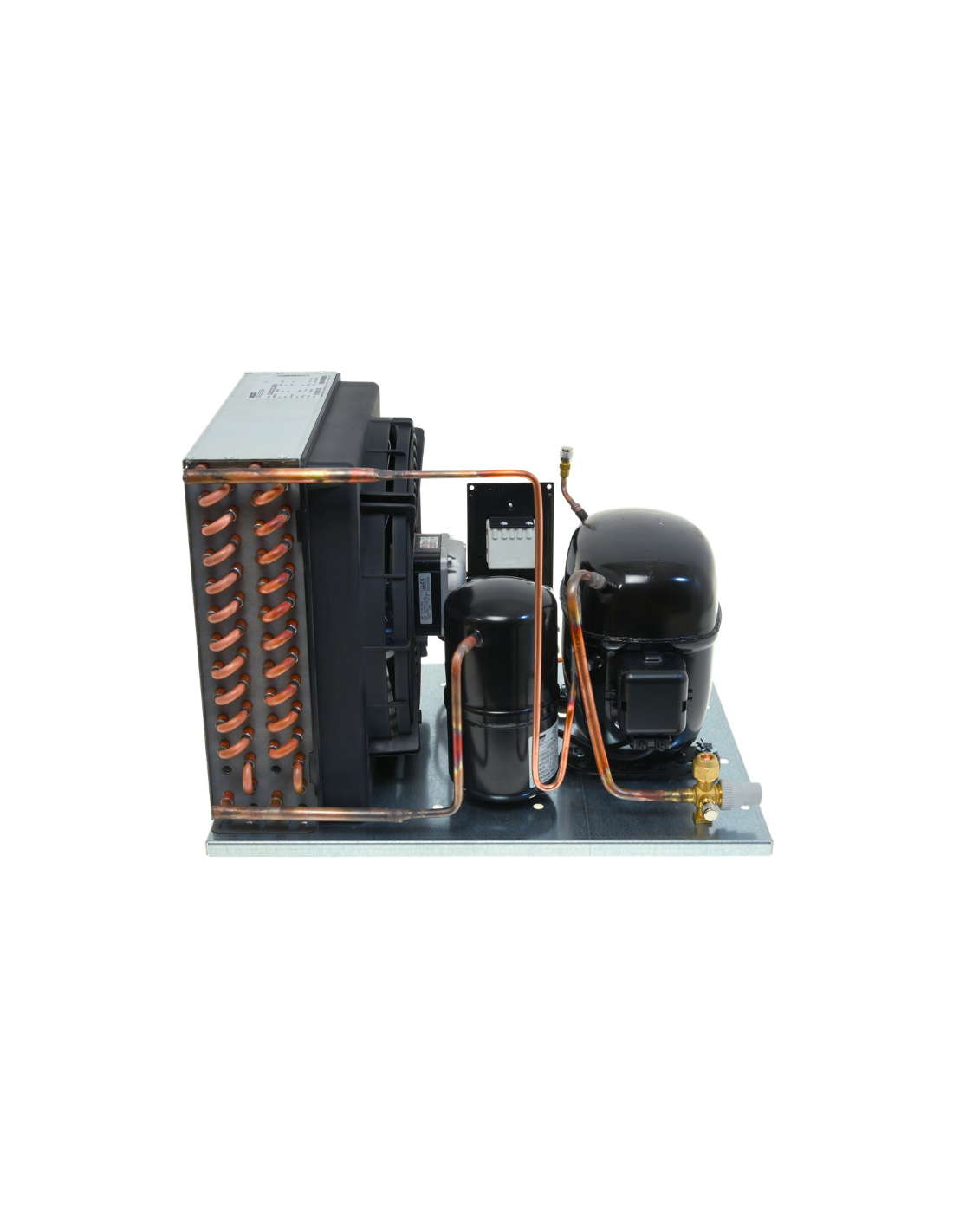 The SECOP SC21CL hermetic refrigeration unit is a complete and robust refrigeration unit designed for professional installations in cold rooms, refrigerated display cases, and small to medium-sized HVAC systems. At the heart of the unit is the SECOP SC21CL hermetic compressor with a displacement of 21.2 cm³, renowned for its reliability, low vibration, and energy efficiency in the LBP (low suction pressure) range.