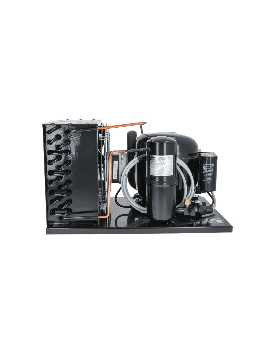 Equipped with a TECUMSEH AE4450Z 8.85 cm³ hermetic compressor, it guarantees reliability, quiet operation, and low consumption. It is compatible with R452A and R404A refrigerants, making it suitable for refrigerated counters, display cases, refrigerators, and small positive-temperature cold rooms.