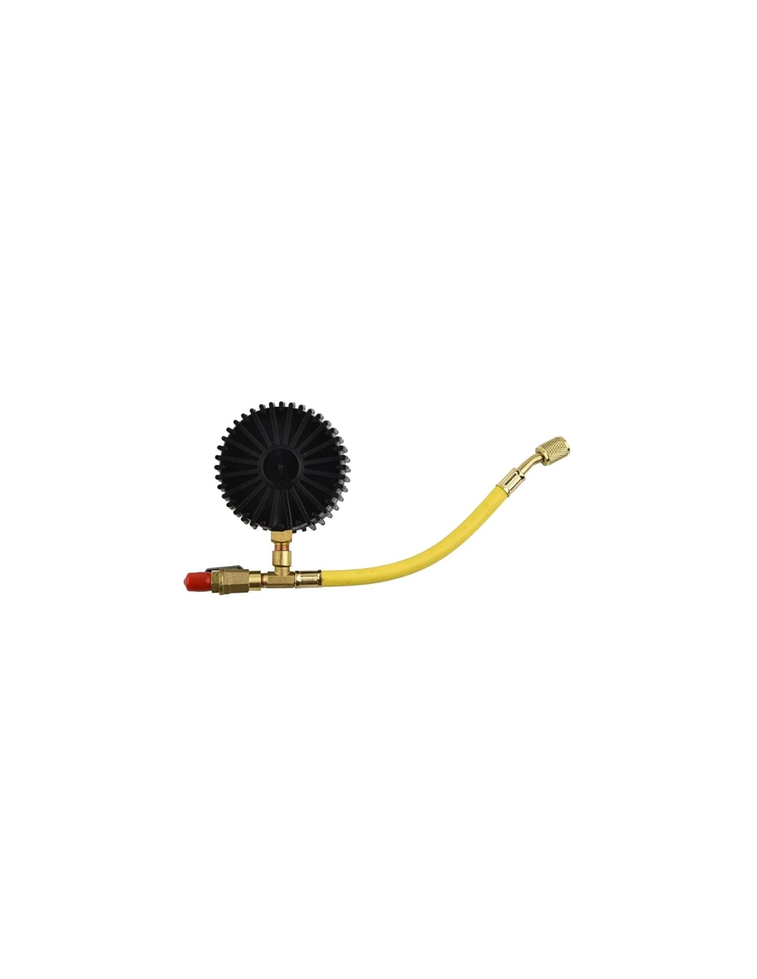 1 litre (0.8 kg) R32 refrigerant gas cylinder, complete with 1/2 valve, integrated pressure gauge and hose for simple, safe and controlled recharging of air conditioning systems.