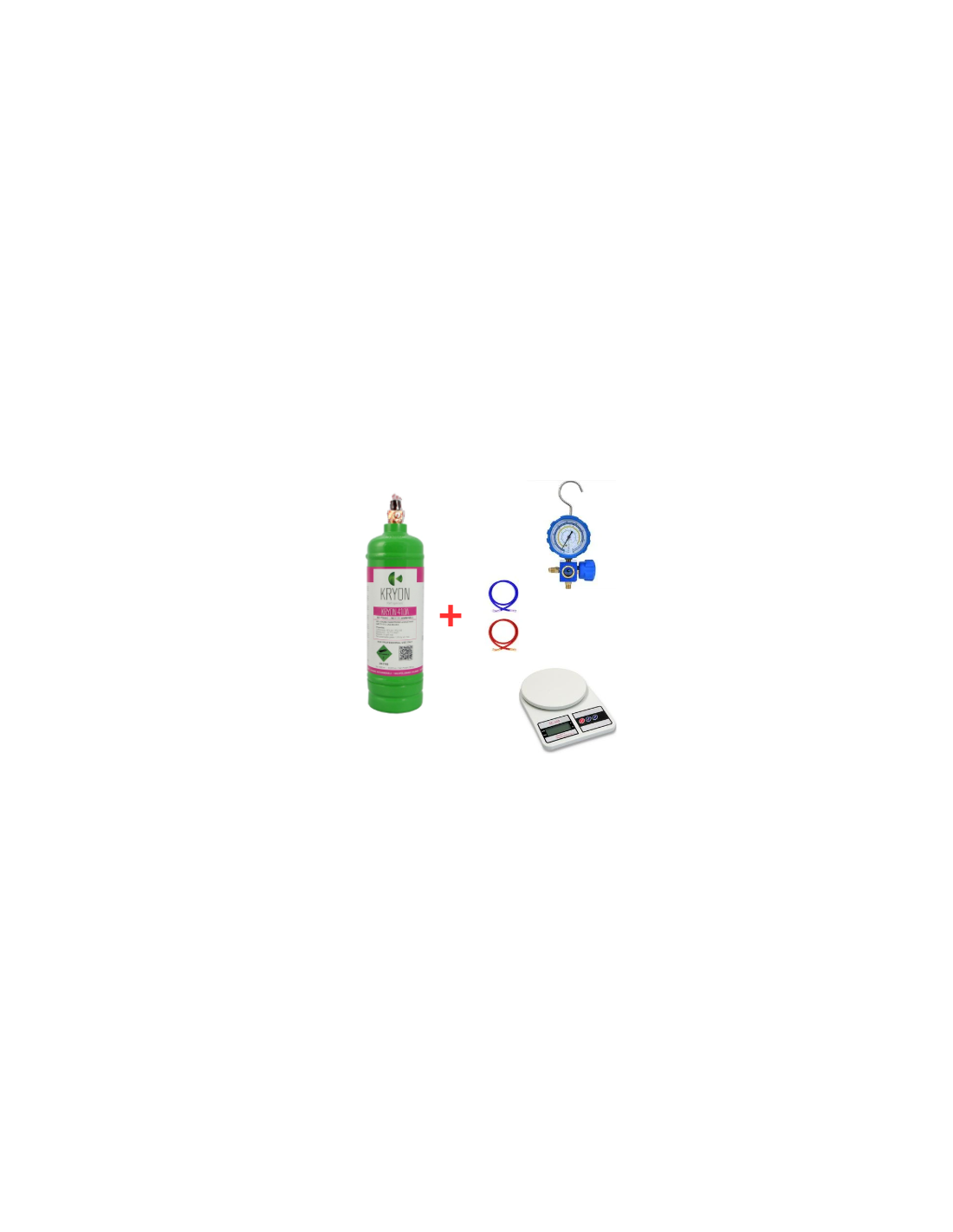 R410A Refrigerant Gas Kit – 1 L (0.8 kg) with 5/16 valve, pressure gauge, hoses, and scale. Ideal for recharging and maintaining home and professional air conditioners. Complete with tools for quick, precise, and safe service.