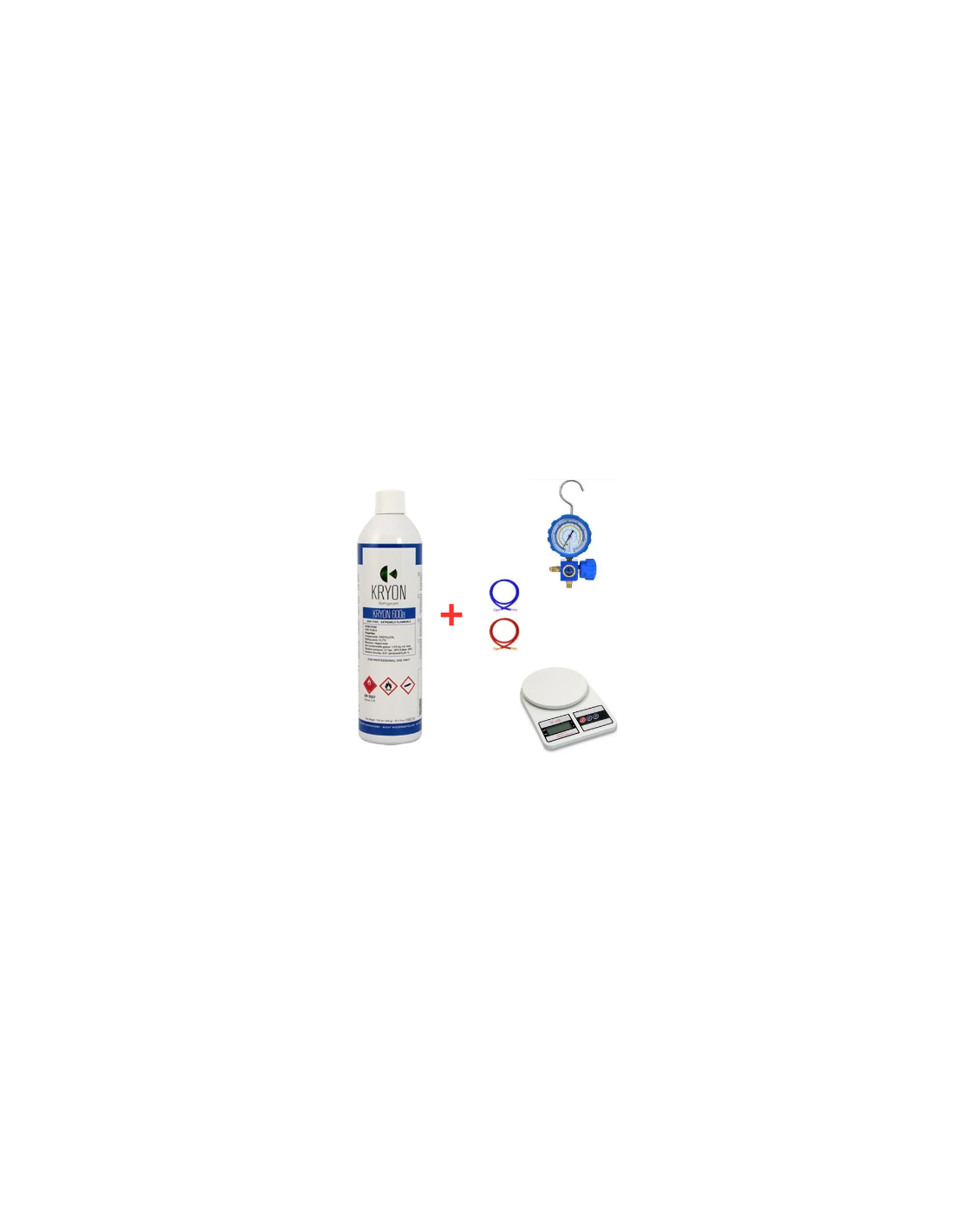 it complete set for recharging R600 refrigerant gas, 0.42 kg, 1 litre cylinder with 7/16" valve. Ideal for low-temperature systems, it guarantees safe and precise recharges.