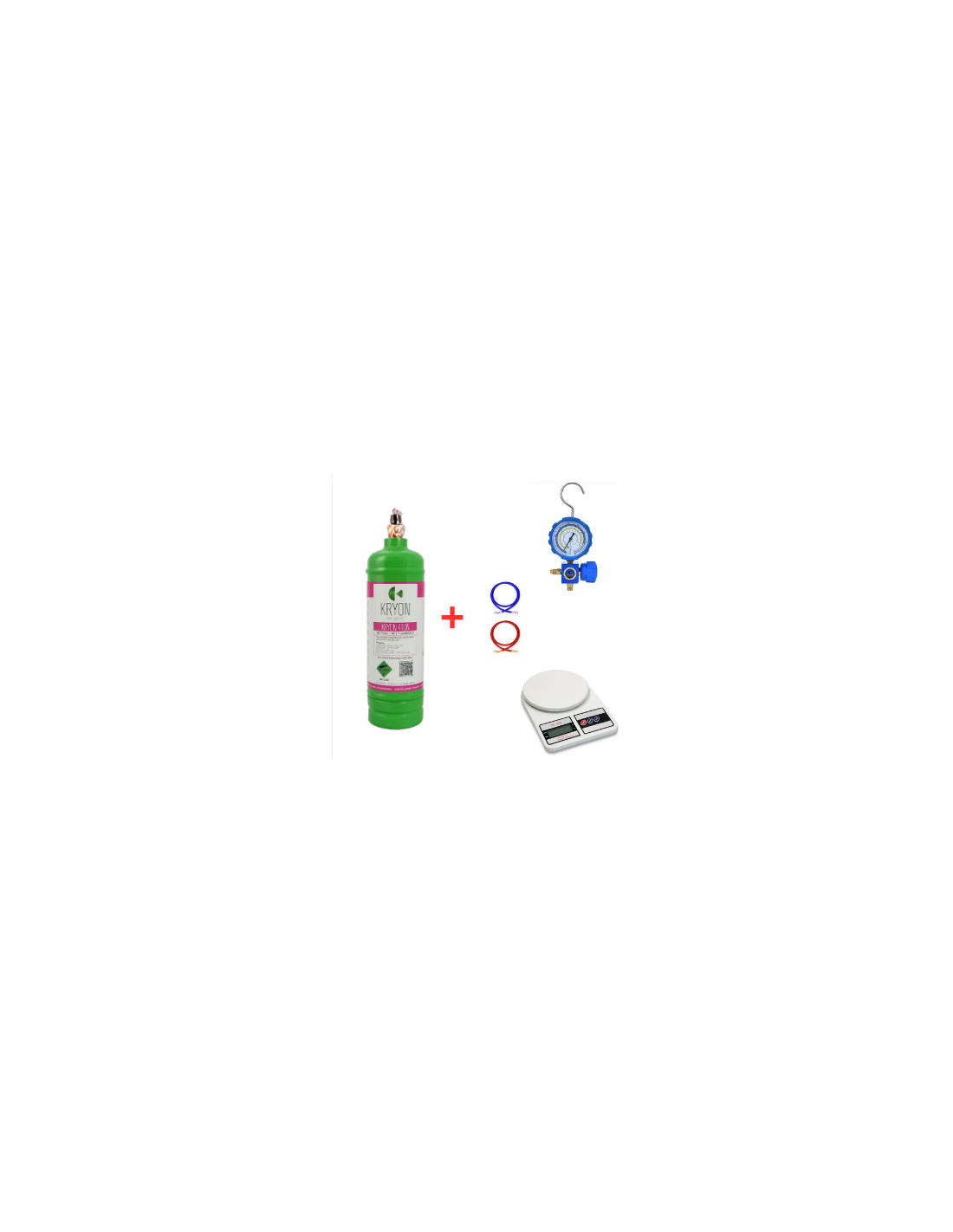 Kit de gas refrigerante R410A de 2,5 L (2 kg) con válvula de 5/16", manómetro, mangueras y báscula electrónica. Ideal para el mantenimiento y la recarga de aires acondicionados y bombas de calor. Gas de alta pureza para un rendimiento óptimo; kit completo, seguro y listo para usar.
