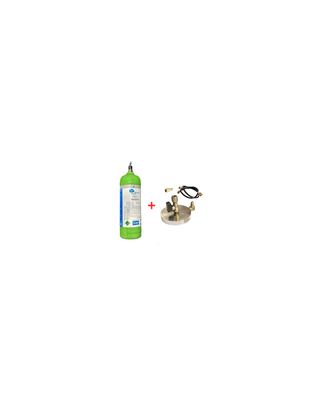 Kit Gas Refrigerante R422D - 1 Lt - 0,9 kg. - valvola ¼ + Supporto Piattello