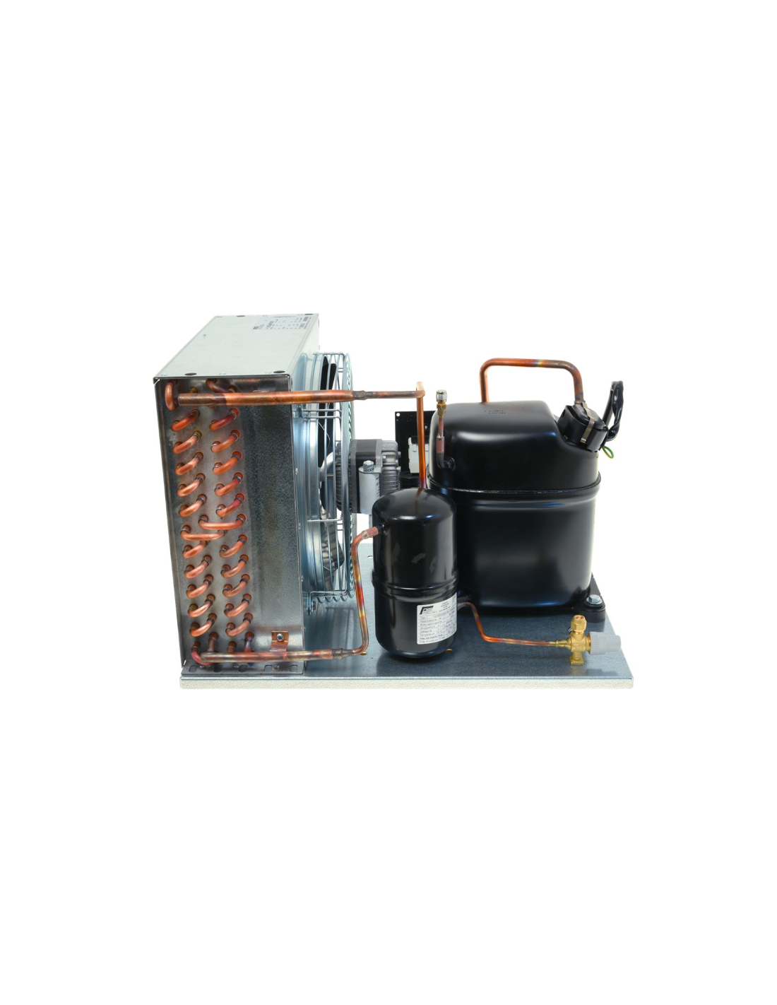 Il cuore dell’unità è il compressore SECOP GS34MFX, che combina una cilindrata di 33,8 cm³ con consumi contenuti e un’elettronica di controllo semplice ed efficace. Grazie alla sua alimentazione monofase 198‑254 V a 50 Hz, è compatibile con impianti elettrici standard e facilmente integrabile in frigoriferi commerciali, celle frigorifere, banchi bar e soluzioni customizzate.