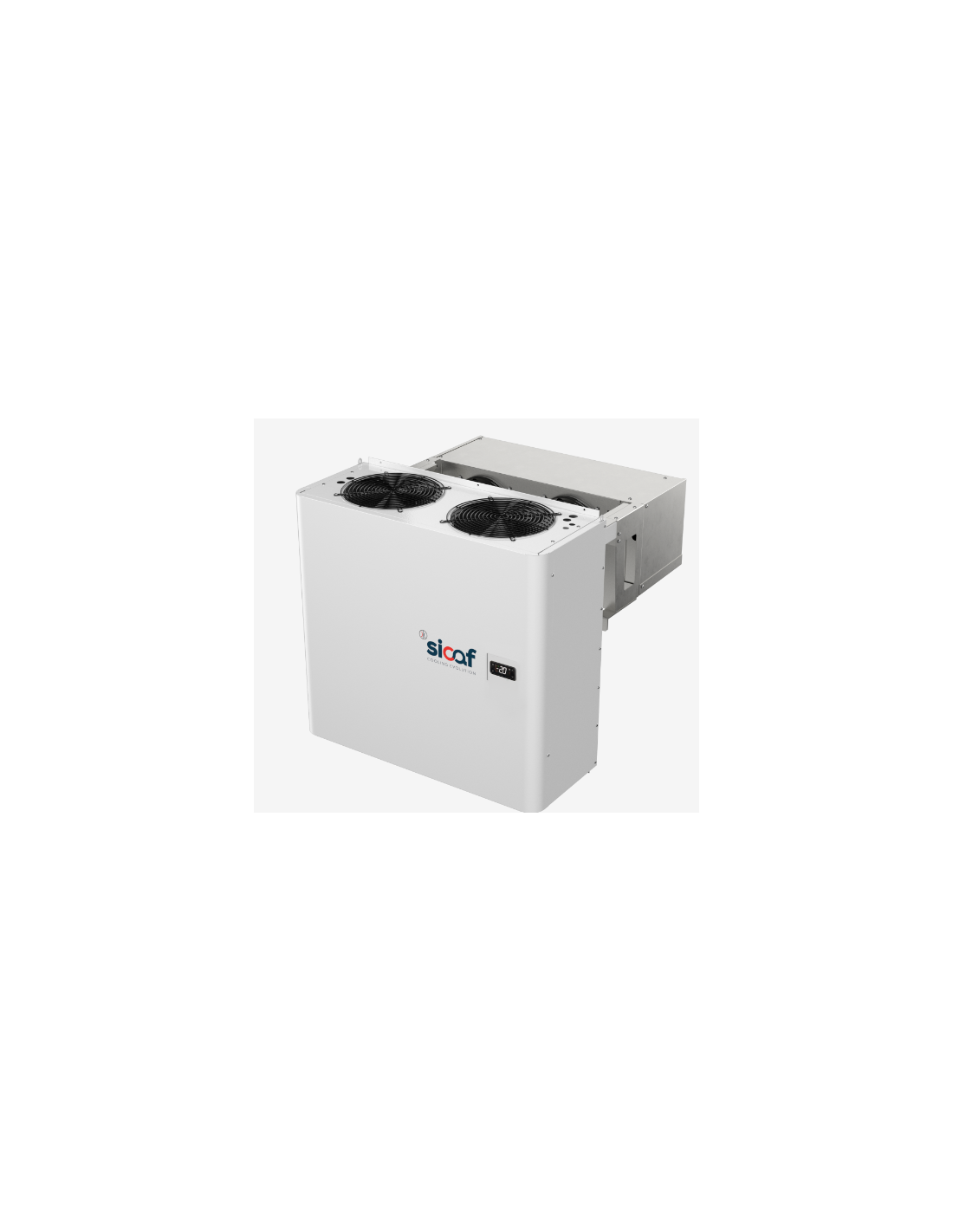 Grazie ai doppi ventilatori su condensatore ed evaporatore, offre una distribuzione uniforme dell’aria con freccia aria fino a 5 metri, mantenendo una temperatura stabile all’interno della cella frigorifera.
